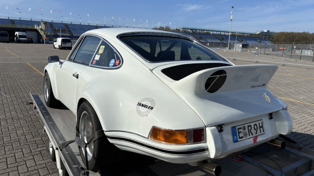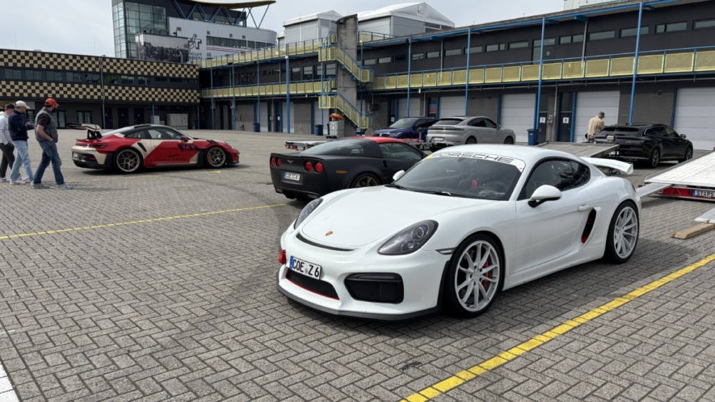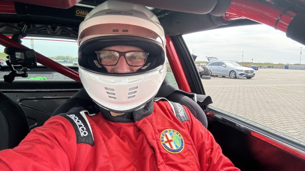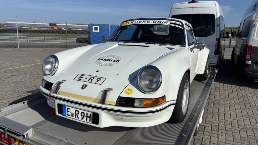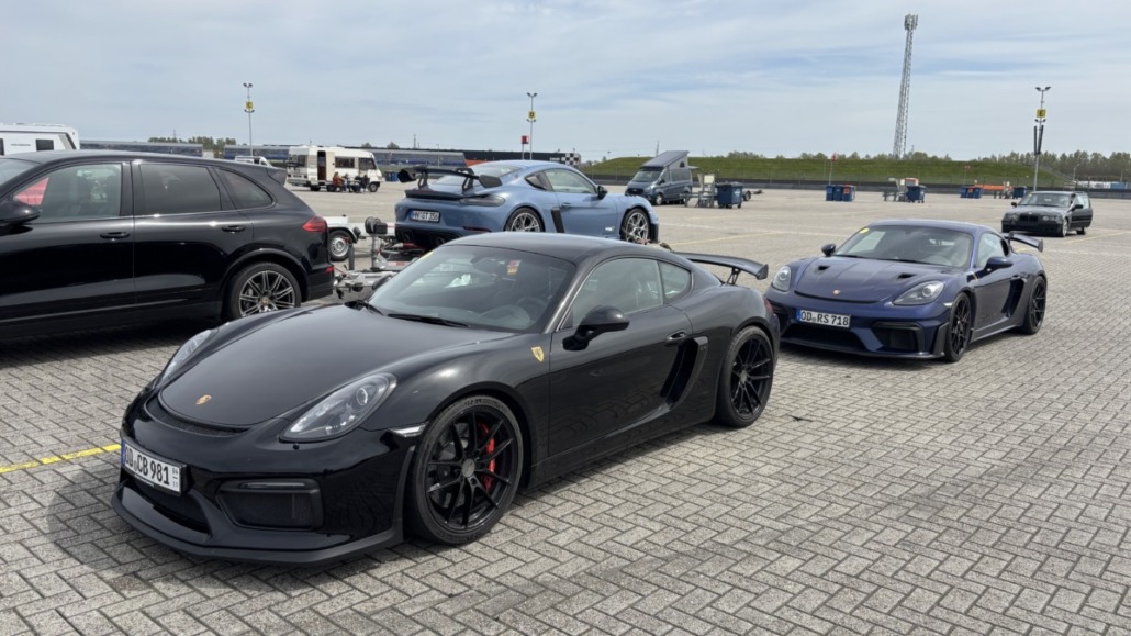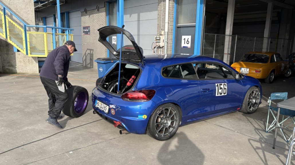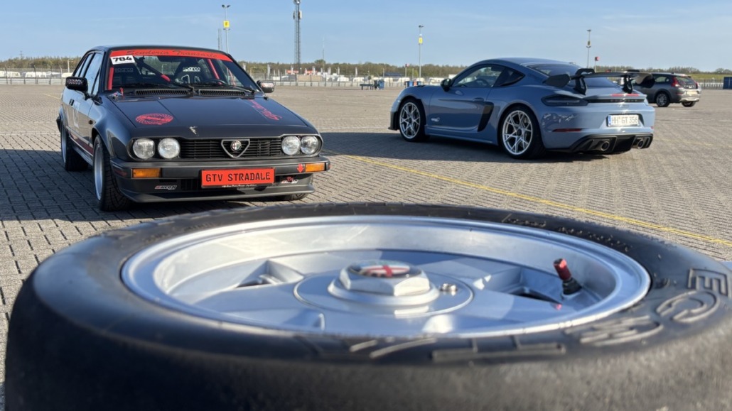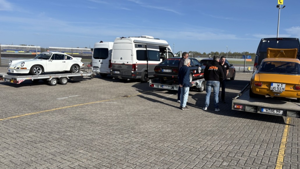 Testfahrten auf einer echten Rennstrecke in familiärer Atmosphäre, und dann noch bei blauem Himmel – gibt es etwas Schöneres? Wie jedes Jahr hatten Michael Küke und Robert Marx wieder den TT-Circuit in Assen gebucht und damit abermals zahlreiche Motorsportenthusiasten auf zwei und vier Rädern in die Niederlande gelockt. Am Sonntag, den 26.05.2026 ab 17:00 Uhr, trudelten nach und nach ein Großteil der Teilnehmer im Fahrerlager ein, zum Teil auf eigener Achse, zum Teil mit dem Renner auf dem Trailer. Zunächst ging es ans Abladen, Aufbauen und zur Registrierung. Auch ich lud die inzwischen 42 Jahre alte TANDLER Alfa Romeo GTV 2.0 Stradale ab und richtete mir mein traditionelles Nachtlager im Kofferraum des Zugfahrzeugs ein. Danach wurden die anderen Teilnehmer begrüßt. Es gab viele bekannte, aber auch einige neue Gesichter.